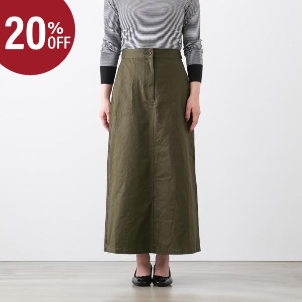 【20%OFF】サラウェア Cotton Twill A-line Skirt コットン ツイル Aライン スカート C21854 SARAHWEAR カーキ ロングスカート ウエストゴム 綿 スリット入り
