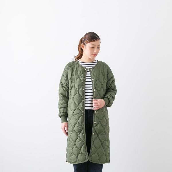 タイオン ミリタリー オーバーサイズクルーネック ダウンコート ソフトシェル TAION W104LSBPML-1-LONG レディース ロングダウン ひょうたんキルティング