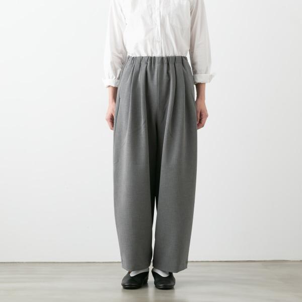 しなやかなダブルクロス素材を使用したTRAVAIL MANUELのコクーンパンツ。ストレッチ性が高くシワになりにくいので、デイリーからフォーマルまで活躍してくれる大人の万能パンツです。