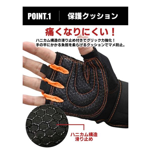ハニカム構造の滑り止め付きでグリップ力強化!手のひらにかかる負担を和らげるクッションでマメ防止。