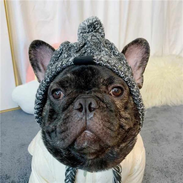 フレンチブルドッグ 犬 帽子 ニット帽 グレー ペット帽子 小型犬 中型犬 大型犬 おしゃれ KM579G