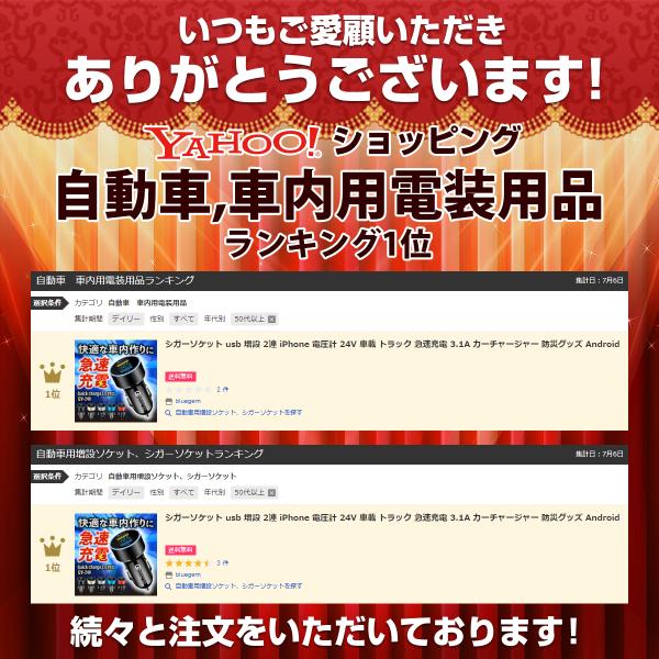 シガーソケット usb 増設 2連 iPhone 電圧計 24V 車載 急速充電 3.1A カーチャージャー 防災グッズ Android