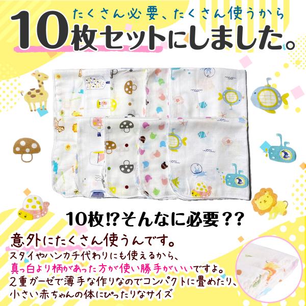 ガーゼハンカチ ベビー 赤ちゃん セット 幼稚園 保育園 10枚セット かわいい おしゃれ ガーゼ キッズ 新生児 綿100% コットン