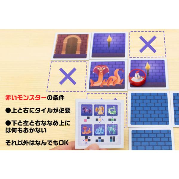 「この配置ならこのモンスターは絶対に違うはず」といった理詰めの推理が楽しいのはもちろんですが、「この人なら予想外の場所を狙ってくるのでは?」「出口を守るならきっとここにモンスターを配置したくなるはず…」といった心理の読み合いも楽しめます。