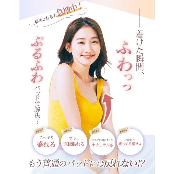 パッドを入れるポケットのない水着やブラジャーにも粘着部分をカップの内側にくっつけて自然に盛れます。