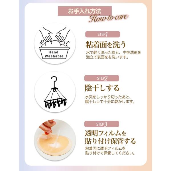 使い方も簡単、透明フィルムを剥がして、粘着部分をブラや水着に貼りつけるだけ。