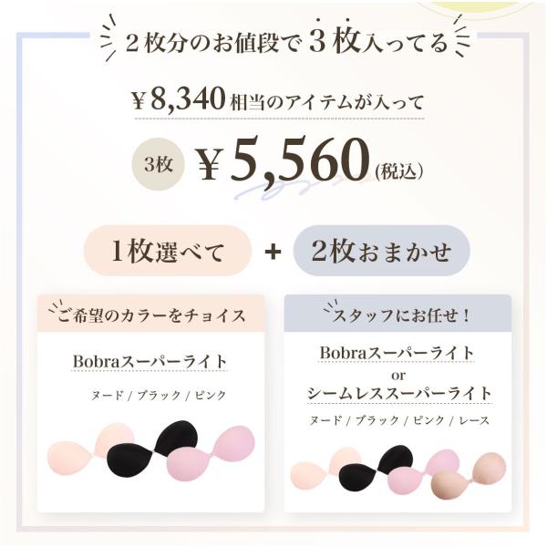 ヌーブラ 福袋 3個セット 水着用 5倍盛 盛れる 大きいサイズ 安い ビーチ ドレス用 パッド シリコンブラ パテッドBobra ボーブラ 即日発送