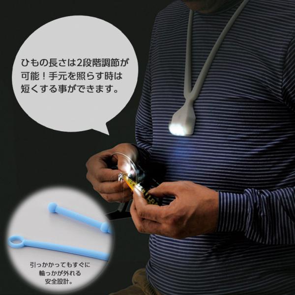 首にかけて使えば両手が自由になるので、停電時や夜間作業、暗い場所での作業にもオススメ♪