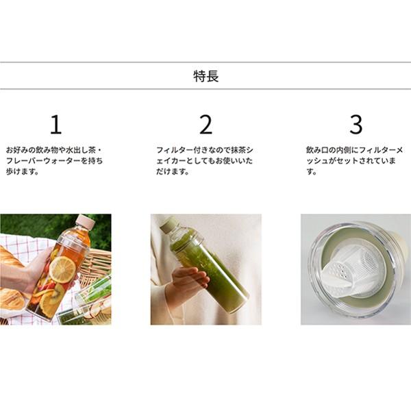 飲み口の内側にフィルターメッシュがセットされているので、お好みの水出し茶やフルーツティーを持ち歩くことができます。