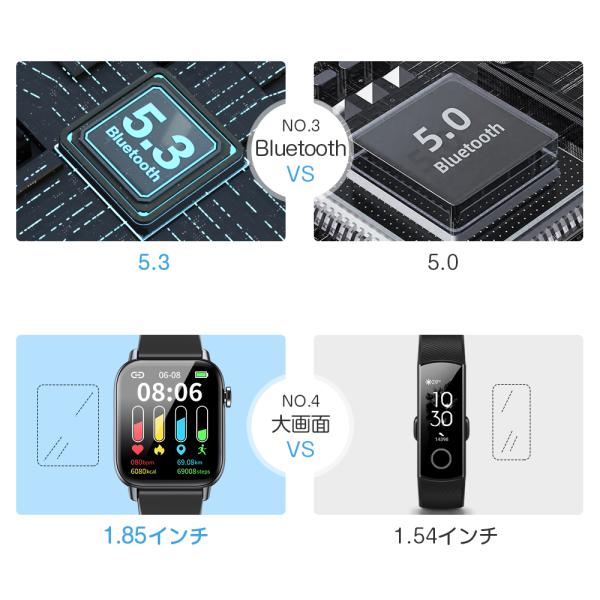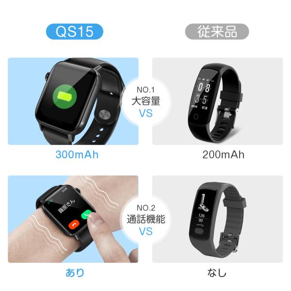 スマートウォッチ QS15 1.85インチ大画面 Bluetooth5.3搭載 通話機能付き 24時間健康管理 自動体温検知 血圧 血中酸素濃度測定 iPhone Android対応