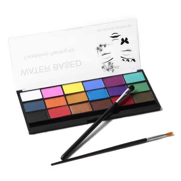 Worldcosmetics365 フェイスペイント 15色 専用筆 6本セット 安全 ボディペイント アートメイク アイシャドウ アイライン チーク