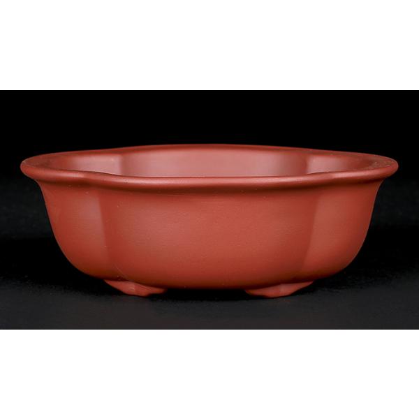 盆栽鉢 紫泥外縁木瓜式鉢 朱泥 植木鉢 中国鉢 泥鉢 陶器 6号 19cm レッド 小品盆栽 ミニ盆栽 山野草に最適