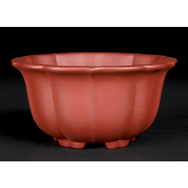 盆栽鉢 紫泥古鏡型鉢 朱泥 植木鉢 中国鉢 泥鉢 懸崖鉢 陶器 5号 16cm レッド 小品盆栽 ミニ盆栽 山野草に最適