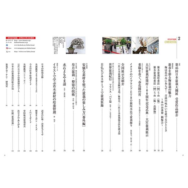 盆栽の魅力・育て方・楽しみ方を、お伝えする盆栽総合誌です。創刊より30余年、日本国内はもちろん世界各国で「KINBON」と呼ばれるようになりました。全国のプロによる懇切丁寧な実技指導、折々の展示会速報、美しい写真による名品紹介に加え、通信販売コーナーも大好評。初心者からベテラン愛好家まで満足できる充実の内容です。