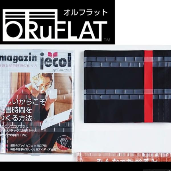 オルフラット/ORuFLATは、折り曲げやすく加工された「たて方向の折り線」と、「よこ方向の折り線」に合わせてカバーの余った部分を内側に折り込み、最後にバンド留めに通したバンドで固定しサイズを自在に変えることができるフリーサイズ雑誌カバーで、クリアタイプの雑誌カバーとしては画期的なアイテムです。