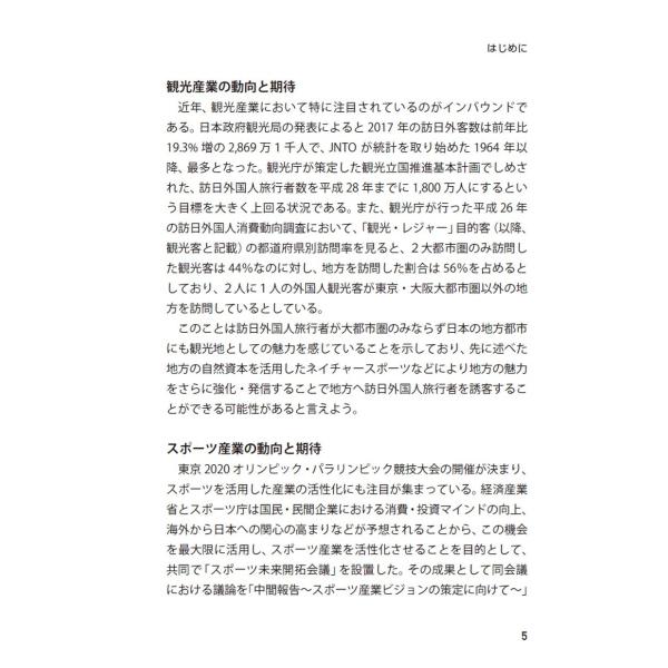日本では、地方での少子高齢や人口減少、都市への人口集中が進み、地方衰退が加速している。地方の衰退を防ぐためには、地方に産業を産み出し、雇用を創出することで定住者を確保することが不可欠である。地方には海、山、川、河、空、丘、大地といった自然資本が多く残されている。それらの自然資本を活用したトレッキングやサイクリング、カヤック、パラグライダーなどの様々なネイチャースポーツも存在する。それらのネイチャースポーツを活用したスポーツツーリズムを促進することも、地域経済を活性化し雇用を創出すると期待されている。<br>本書は研究者から実務者まで新進気鋭のメンバーにより政策や学術、事例報告までスポーツツーリズムに関する内容を幅広く網羅したものとなっている。