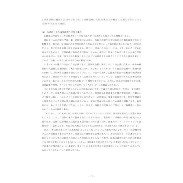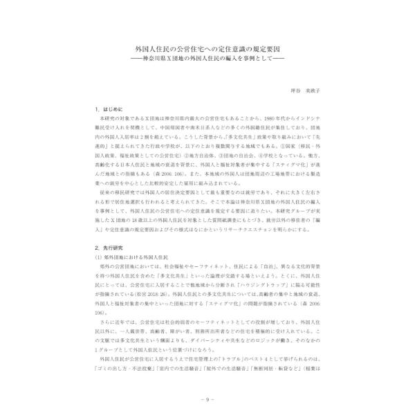 郊外団地における外国人住民の社会的統合 神奈川県X団地にみる「多文化共生」の現在/坪谷美欧子