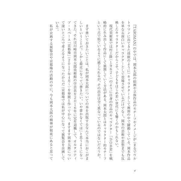 元川崎市岡本太郎美術館の学芸員が、美術館準備室から美術館開館という事業の中で、実際に岡本太郎や養女の岡本敏子から学び、体験したことや様々な展覧会の企画を通して多面体・岡本太郎芸術や精神を如何に継承し、具現化としたかという痕跡であり、記録である。