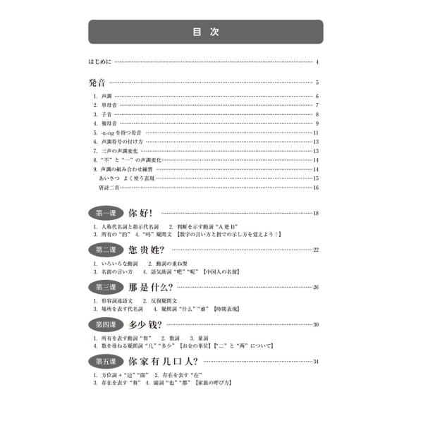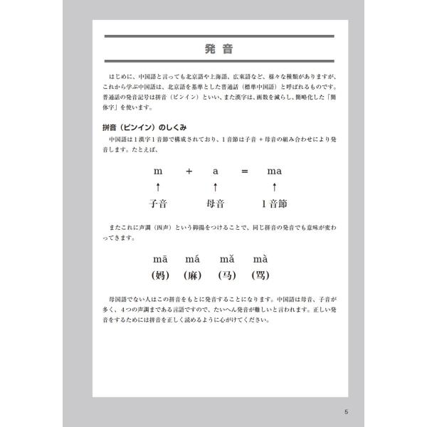 本書は、中国語を初めて学ぶ人が基礎的な力を身につけるための初級テキストです。