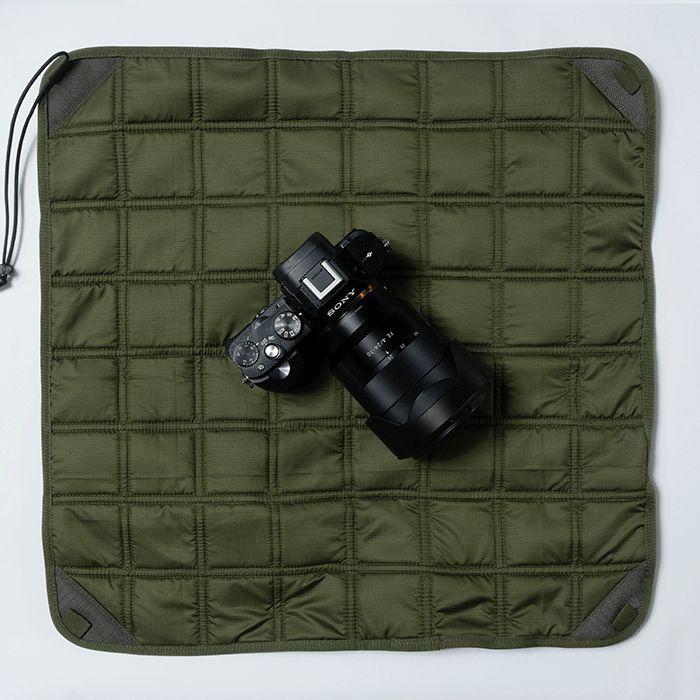 小型カメラ、レンズ、ipad、携帯ゲーム機など機材をやさしく保護する36センチ×36センチの通常版に加え、13インチPCまで包める45センチ×45センチのビッグサイズが追加!生産時間がノンワイヤーラップの約4倍という細かな手作業により、14本のワイヤーが内蔵され一枚のラップが自由自在にフィット!ステッチ部分に配置された形状保持ワイヤーで自在に折り曲げる事が可能になり、64のマス目が細かくフィットする事でよりコンパクトに包む事を実現しました。裏面生地には撥水ポリエステルを使用。表面のMOUTHワッペンが取外し可能の為、表面のお好みの箇所に取付けできますので開け閉めの際の目印として同じ角を使い続けることでのマジックテープの粘着力低下を防ぐことができます。さらにフレックスマルチラップ14にのみ、これまで頂いたユーザーレビューを参考に考案したゴム製コードストッパー付バンジーコードを採用!カメラストラップやバッグに引っ掛ける事が可能になりました。大切な機材を保護するカメラケース、携帯ゲーム機ケースとして、レンズや配線などをポーチの代わりとしてマジックテープでくるっと包めて収納できる便利なアイテムです。