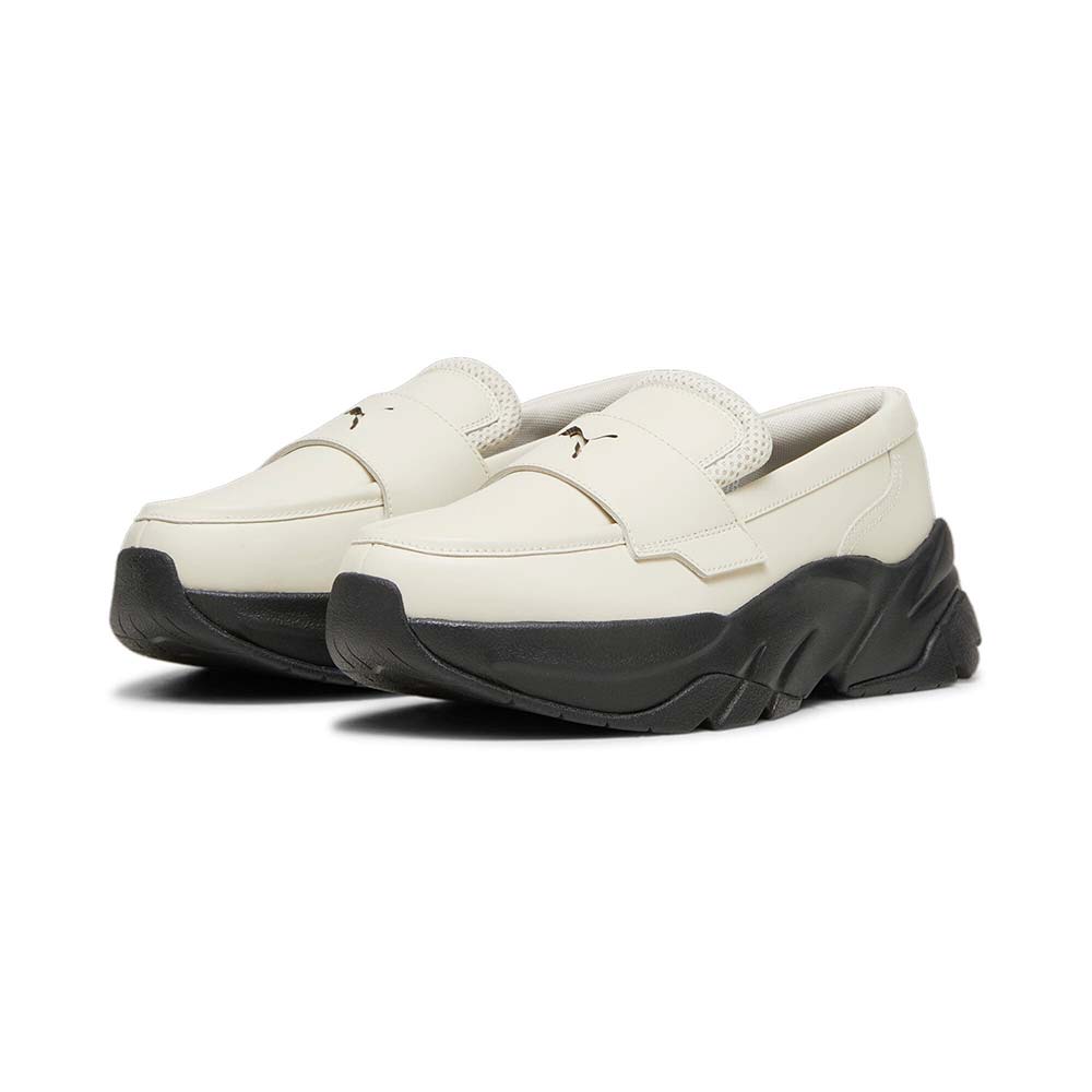 ストリートの要素を残しつつ、スマートなアッパーとハイキングにインスパイアされた分厚いソールが特徴的なローファーが登場。滑らかな合成素材とプレミアムレザーの組み合わせ、軽量でクッション性の高い EVA ミッドソールで、カジュアルからキレイ めの コーデまであらゆるシーンでお使いいただけます。ストラップにプーマキャットロゴが施され、他にはないブランドらしさを感じられる一足。