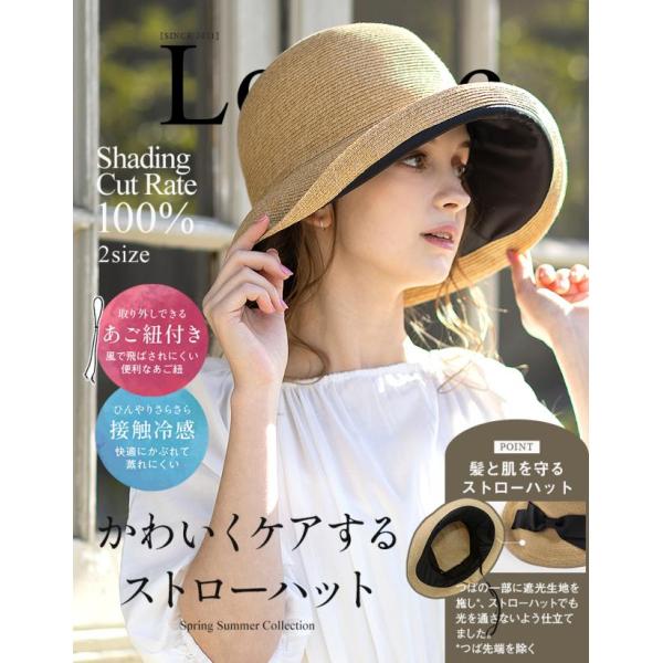 半額 帽子 レディース 大きいサイズ UVカット 遮光100% 自転車でもあご紐で飛ばない ストローハット キャスケット 折りたたみ 春 夏