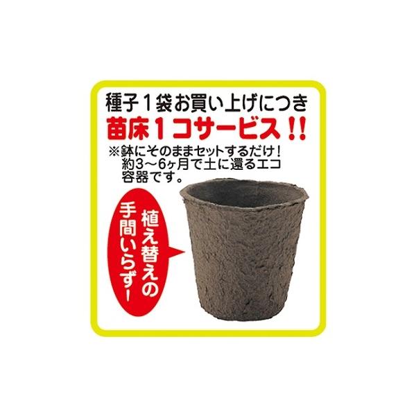 鉢にそのままセットするだけの便利な苗床(ポット)が付いています。苗床は約3〜6ヵ月で土に還るエコ容器です。ミニトマト苗床(パルプ製)付入数:1袋(約8〜10粒)