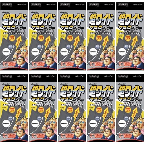 クリーンエイド マスク グレー 個包装 7枚入 10個セット アズフィット 大きい ワイドマスク 超ワイドマスク 健康 対策