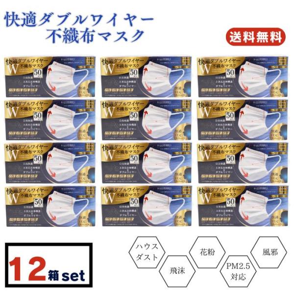 ヒロコーポレーション マスク ダブルワイヤーマスク 不織布 50枚入×12個 合計600枚入り ふつうサイズ ホワイト 3次元立体構造 花粉 ハウスダスト PM2.5
