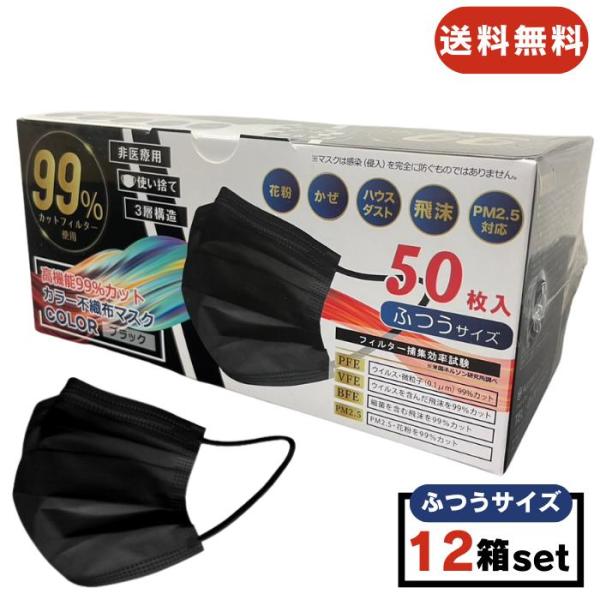 ヒロコーポレーション マスク 不織布 黒 ブラック ふつうサイズ 50枚入り 12箱 使い捨て 使い捨てマスク お徳用 ウイルス飛沫対策 風邪 花粉 PM2.5対応 送料無料