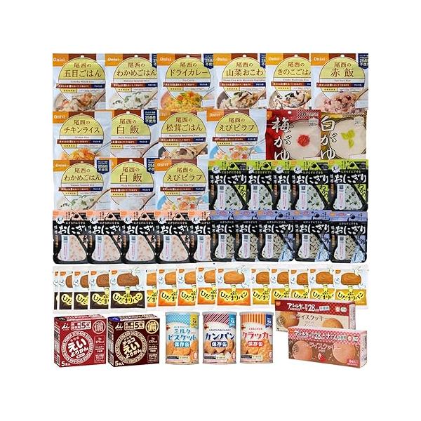 【防災士×管理栄養士監修】非常食セット 5人用 3日分 計45食+おやつ7種付き 尾西食品 アルファ米 携帯おにぎり パン 災害用 長期保存備蓄食料 くらし安心Labo