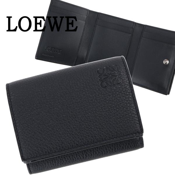 LOEWE ロエベ 二つ折り財布 小銭入れ付き トライフォールド ウォレット 折財布 メンズ レディース ソフトグレインカーフ 本革 アナグラム ブラック C660TR2X04