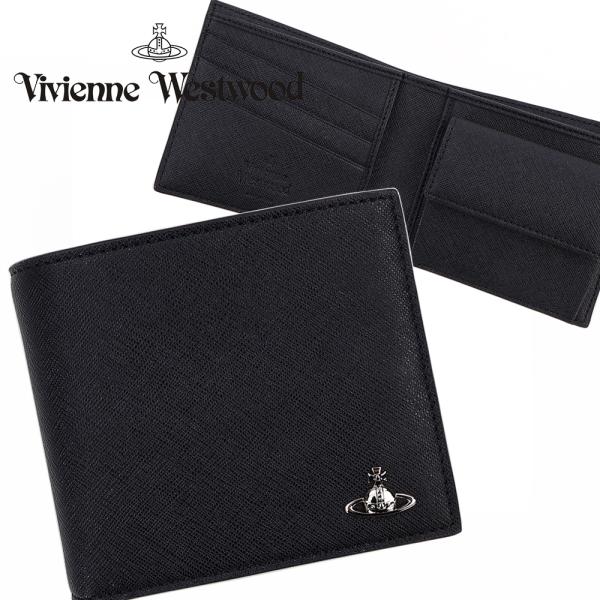 ヴィヴィアンウエストウッド Vivienne Westwood 財布 ブラック 二つ折り 小銭入れ付き サフィアーノ コンパクト ウォレット ミニ財布 オーブ 5115003NM