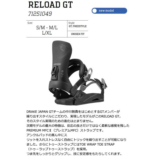 26-27 DRAKE/ドレイク RELOAD GT リロードジーティー 中川智貴 メンズ レディース ビンディング バインディング スノーボード 2027 予約商品
