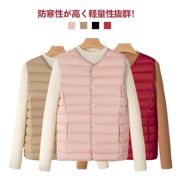 暖か 軽い レディース ダウンベスト ライトダウン ノーカラー インナーダウン アウター 防寒 無地 ダウンベスト ライトダウンベスト 薄い あたたか