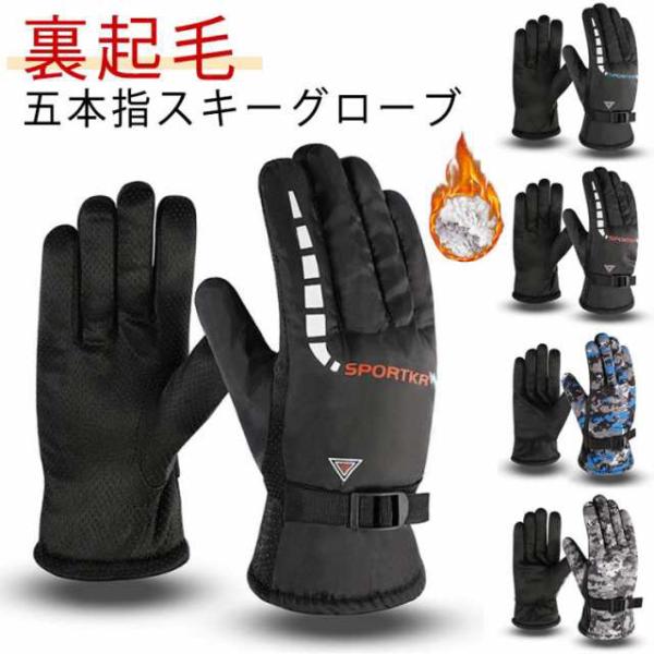 スキー手袋 撥水加工 手袋 五本指 送料無料 裏起毛 メンズ 冬用 防水 男女兼用 送料無料 スキーグローブ スノー手袋 スノボー スノボグローブ 迷