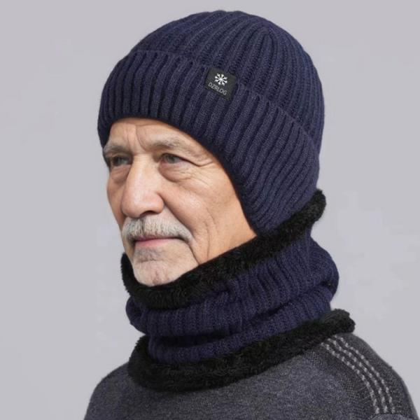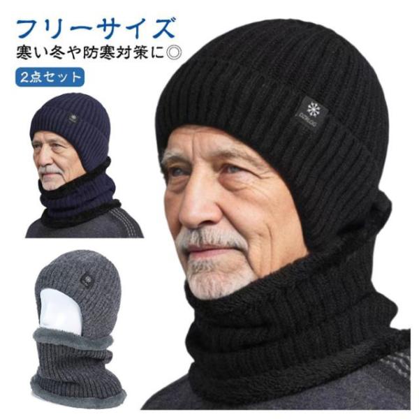 秋冬 防寒 ニットキャップ メンズ ハット ニット帽 ネックウォーマー シニア ニット帽 裏起毛 耳あて 厚手 2点セット 帽子 裏ボア 冬用 あった