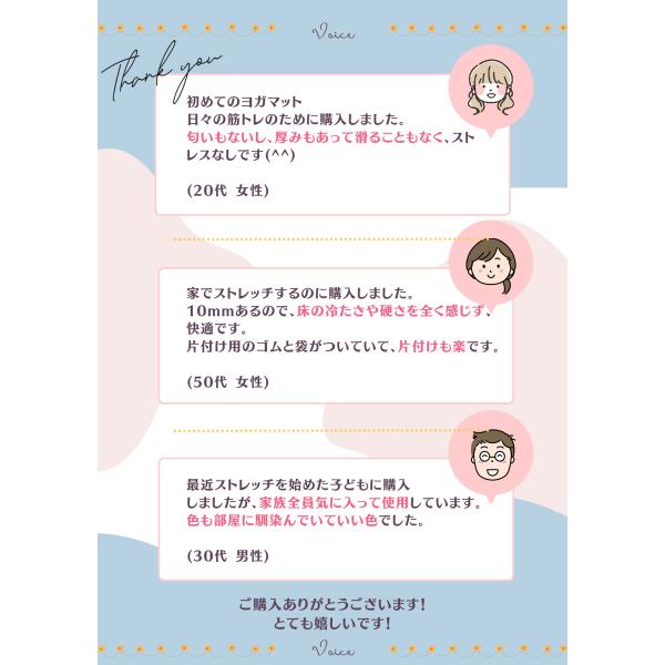 ※ ヨガマット は柔らかい素材の為、輸入、配送の際にキズが生じることがございます。また、商品製造過程において検品を行っておりますが、製造上の気泡が残る場合がございます。品質には問題ございませんのでご了承くださいませ。