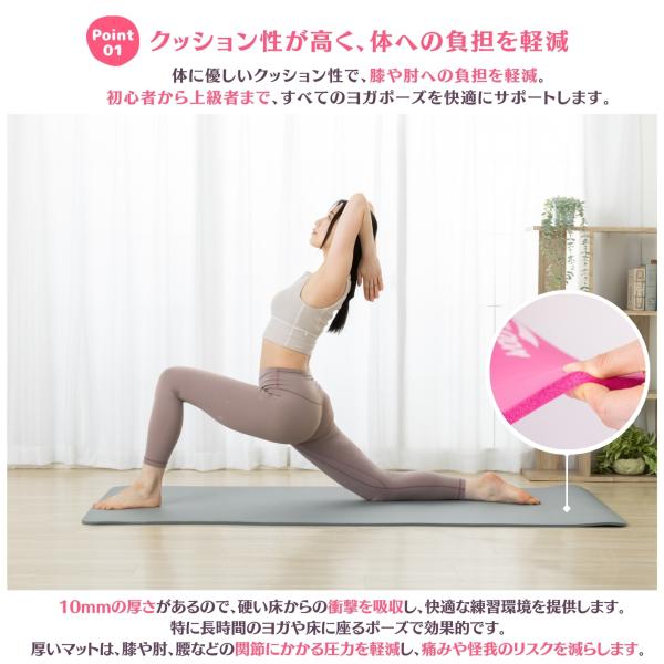 ヨガマット Soomloom 極厚10mm 幅61cm ヨガ ピラティス マット 厚手 トレーニングマット ストレッチマット 筋トレマット 収納ケース バンド エクササイズマット