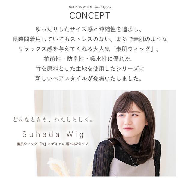 素肌ウィッグとは、ゆったりしたサイズ感と、伸縮性を追求し、長時間着用していてもストレスのない
