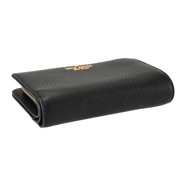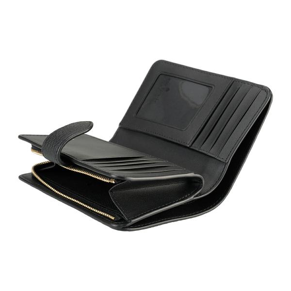 無地 本革 牛革 メタルロゴ 型押しレザー コンパクト ミニ財布 シンプル エレガント 2つ折り財布 LENA レナ MEDIUM COMPACT BIFOLD WALLET ブラック 黒 財布 全国送料無料