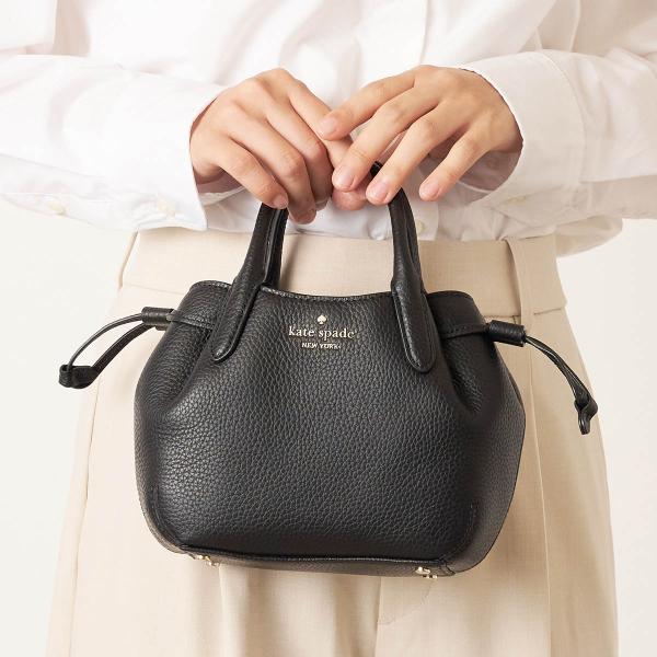無地 ロゴ 本革 牛革 シボ レザー 2WAY ハンドキャリー ショルダーバッグ 斜め掛け クロスボディバッグ コンパクト 仕切 金具ゴールド ケートスペード エレガント フェミニン ハンドバッグ DUMPLING ダンプリング ミニ サッチェル ブラック 黒 バッグ 全国送料無料