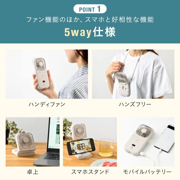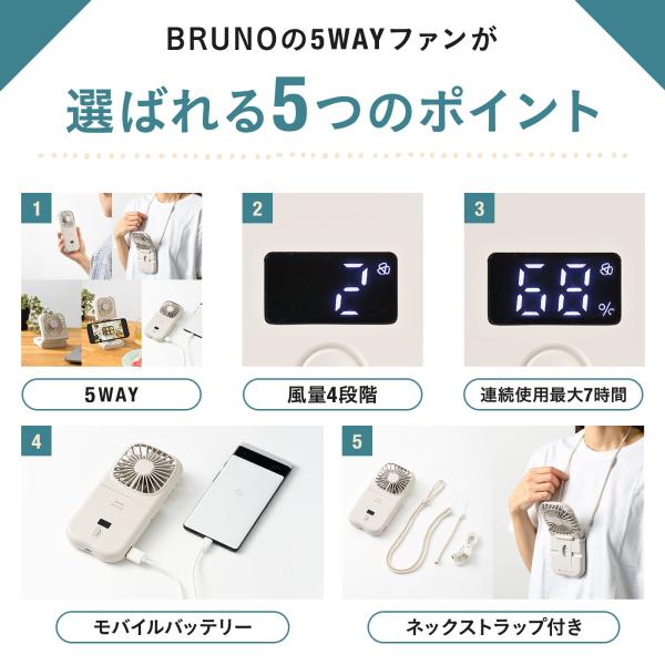 公式 BRUNO 5WAYフォールディングファン BDE068 ハンディファン ブルーノ 手持ち扇風機 手持ち 置き型 ネック モバイルバッテリー スマホスタンド 1台5役