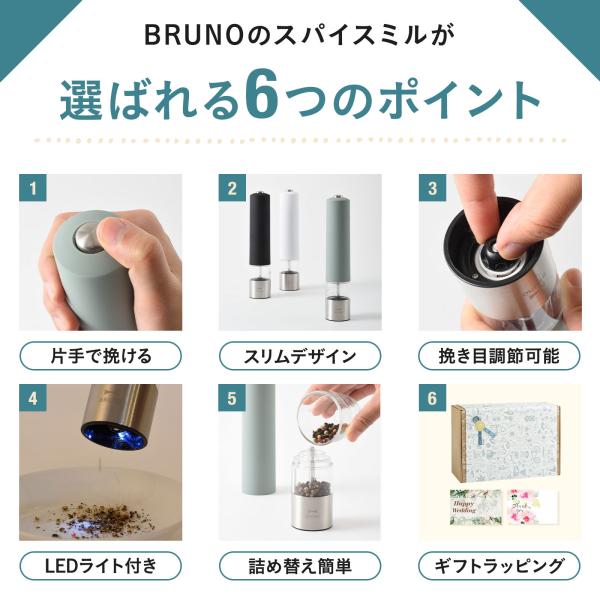 スパイスミル 電動 スパイス ミル ブルーノ LEDライト付スパイスミル BHK223 ペッパーミル 電動ミル 電池 BRUNO 母の日 引っ越し祝い 入学祝い