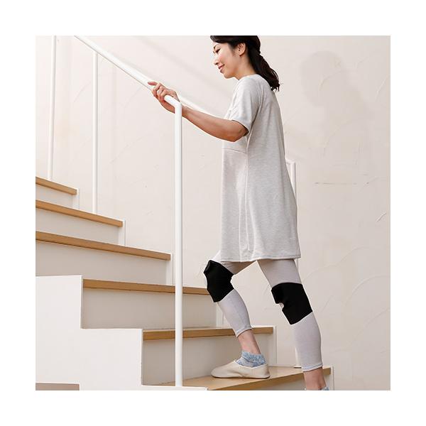 膝に巻くだけで温かくズレにくい。長時間の歩きや階段の上り下りが楽になります。