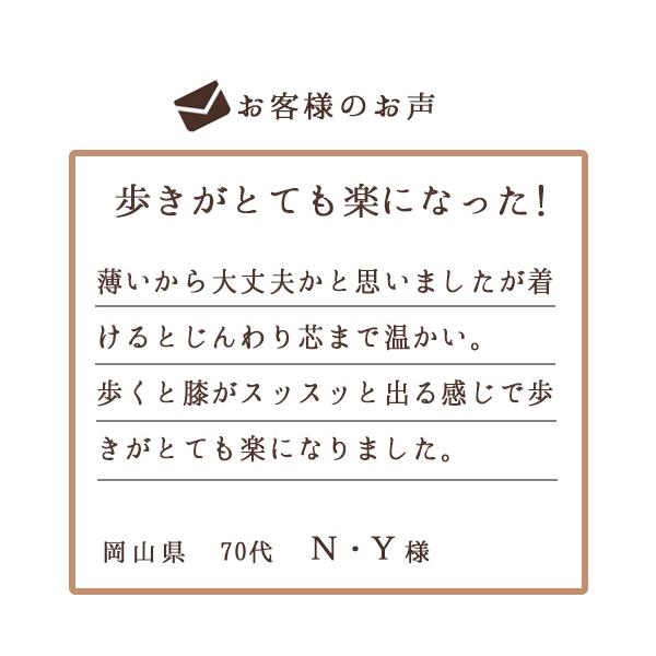 伸びやかな生地で薄くてかさばらず、冷えてつらい膝関節を蒸れずにじんわり温めます。