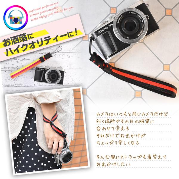 発売記念SALE【 おしゃれ カメラストラップ COLOR 】 細い カメラストラップ ブラック レッド ナロータイプ デジカメ コンデジ ミラーレス一眼レフ 一眼レフ キャノン ニコン ソニー 等のデジカメにぴったり ファッション おしゃれ カメラ女子 夏フェス イベント ライブ