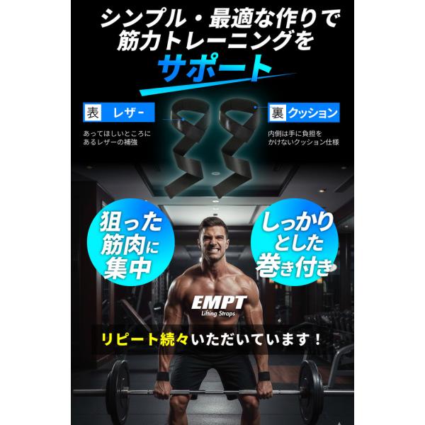 リフティングストラップ リストストラップ 筋トレ デットリフト チンニング 時の握力補助に最適 目的の筋肉に最適な負荷を フリーサイズ ブラ
