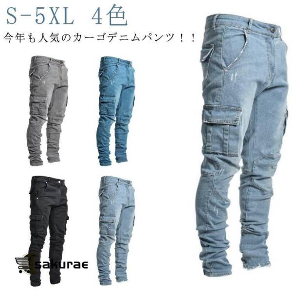 スキニーデニム カーゴパンツ S-5XL ストレッチ ジョガーパンツ ボ ジーンズ ジーパン 大きいサイズ 長ズボン S-5XL 作業ズボン 作