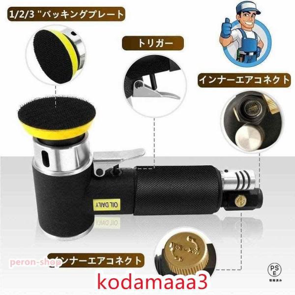 ポリッシャー エアアングルサンダー 空気圧研磨機 エアーグラインダー 偏心ポリッシャー 研磨エアー工具 パテ研磨 木工研磨 ミニ研磨機